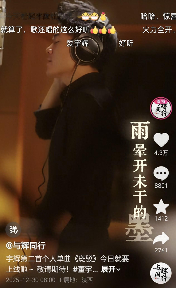 12月30日早上8点,就在各人还在为早上莫得抢到“与辉同业定制吐司”而颓靡时,董宇辉却一霎给各人来了一个大惊喜,那即是他果然安排小编在8点正的时候发视频官宣“宇辉的第二首个东说念主单曲《斑驳》当天就要上线啦!敬请期待!”。念念不到宇辉又偷偷咪咪地干了一件大事,果然毫无声气地就有创作了一首新单曲,况兼如故在新年跨年快莅临的时候发布上线,这个时刻点选的可真的够好的!